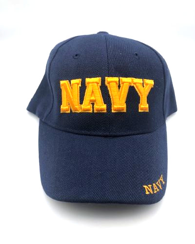 100% Acrylic NAVY embroidered Blue Hat with Velcro Back, Adjustable, One size fits most