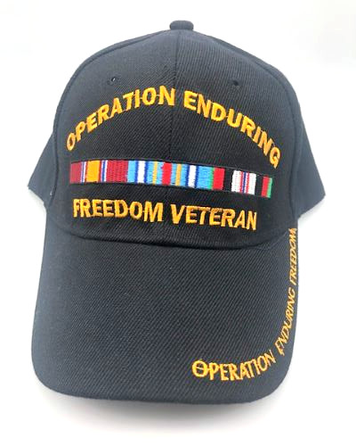 100% Acrylic Operation Enduring Freedom Veteran embroidered Black Hat with Velcro Back, Adjustable, One size fits most