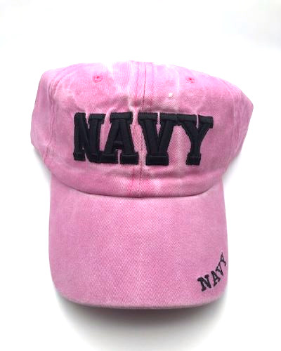 100% Cotton NAVY embroidered Pink Hat for ladies with Velcro Back, Adjustable, One size fits most