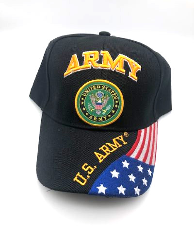 100% Acrylic U.S.Army embroidered Black Hat with Velcro Back, Adjustable, One size fits most