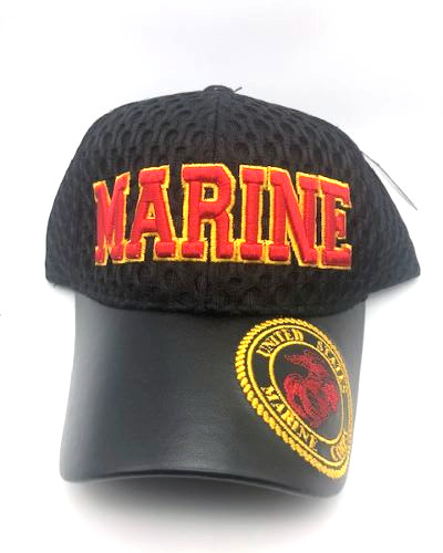 Nylon with leather bill U.S. Marine blaci Hat, with Velcro Back, Adjustable, one size fits most